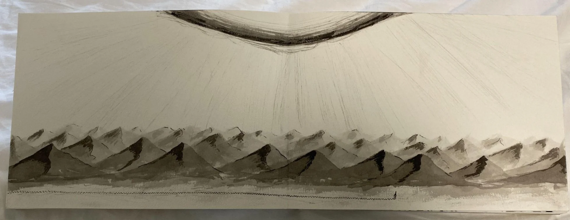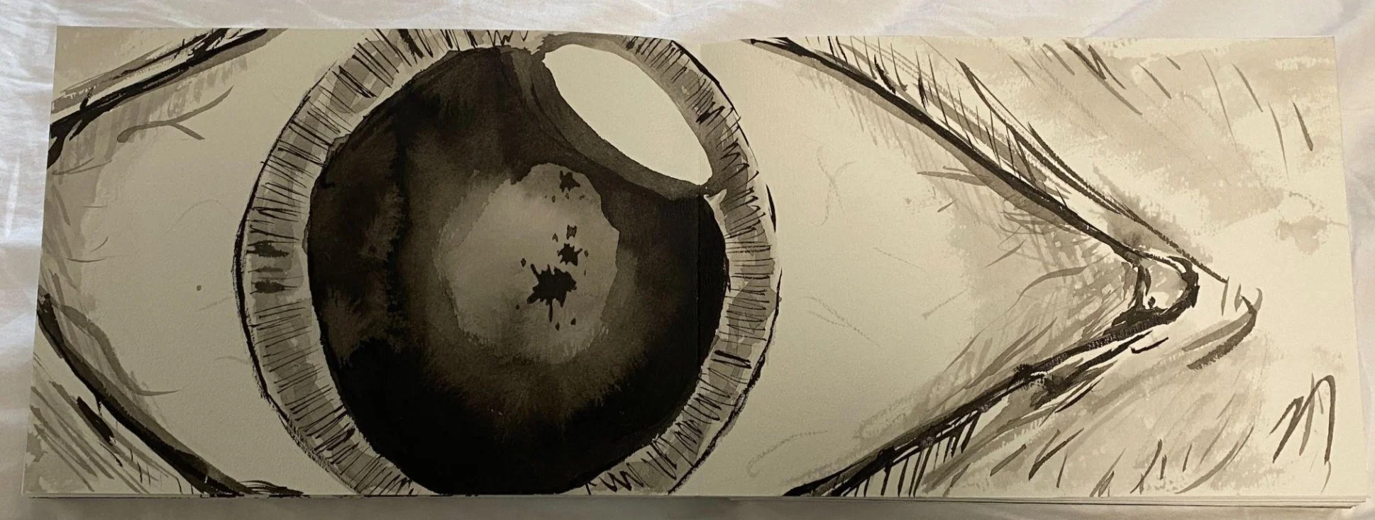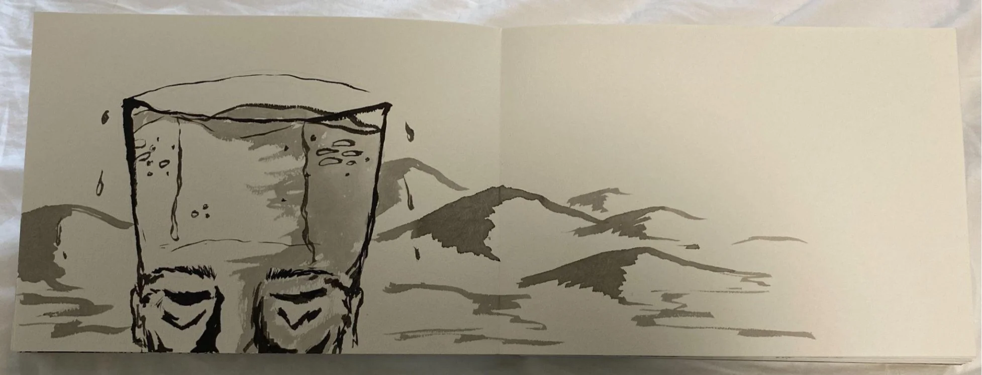 The main character for this book came to me in a dream while I was in the throes of art school. I wanted to incorporate this surrealistic character in to my work somehow, eventually motivating me to construct this story. Like many others during the pandemic, my in-person courses switched to online courses, meaning I’d have to bind the book in my room if I wanted to produce it as promised. I hand drew every page, flattened them, and bound the book on the floor of my small apartment in Tokyo, with several challenges along the way. This book is a 1/1 edition, however I am open to some revision if it were to be considered for publication.